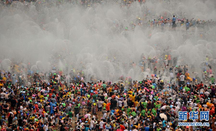 央廣網河南分網消息 據新華網報道:4月15日,數萬名當地群眾和游客在云南省西雙版納州景洪市潑水廣場上潑水狂歡。當日是2014年西雙版納潑水節,也是傣歷1376年新年節系列活動的最后一天,數萬名當地群眾穿上節日盛裝,和外地游客一起在云南省西雙版納傣族自治州景洪市互相潑水,互祝吉祥、幸福、健康。潑水節是傣族人民送舊迎新的傳統節日,已有上千年歷史。(新華社記者 藺以光 攝)