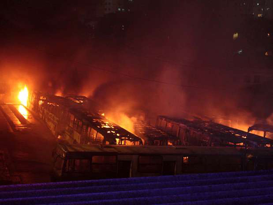 據悉,當晚7點20分左右,圣保羅市市區一處公交車站內的20輛公交被點燃,19輛公交被完全燒毀,一輛公交車部分車體被燒。
