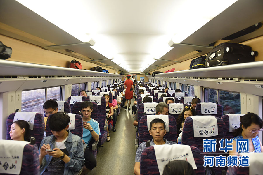 新華網河南頻道8月19日電(趙齊林)8月18日,C2900次“云臺山”號鄭焦城際列車在鄭州火車站冠名首發,列車內多種媒體形式為游客提供了豐富的游覽信息和服務。