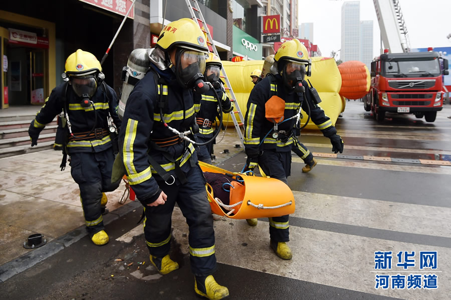 11月8日,河南省消防總隊官兵進行高層建筑人員救援演練。