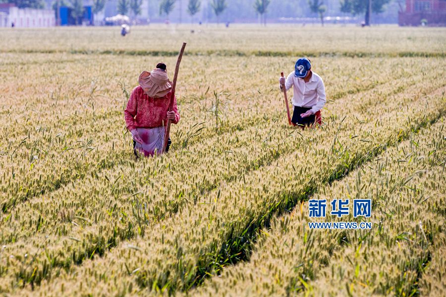 2016年5月22日,河南省安陽縣農民在即將成熟的麥田里套種玉米。目前,豫北地區距小麥收獲還有半個月時間。在在即將成熟的麥田里套種玉米、花生等秋季作物,可以有效增加莊稼的生長期,提高產量,增加收入。 新華網發(王子瑞 攝)