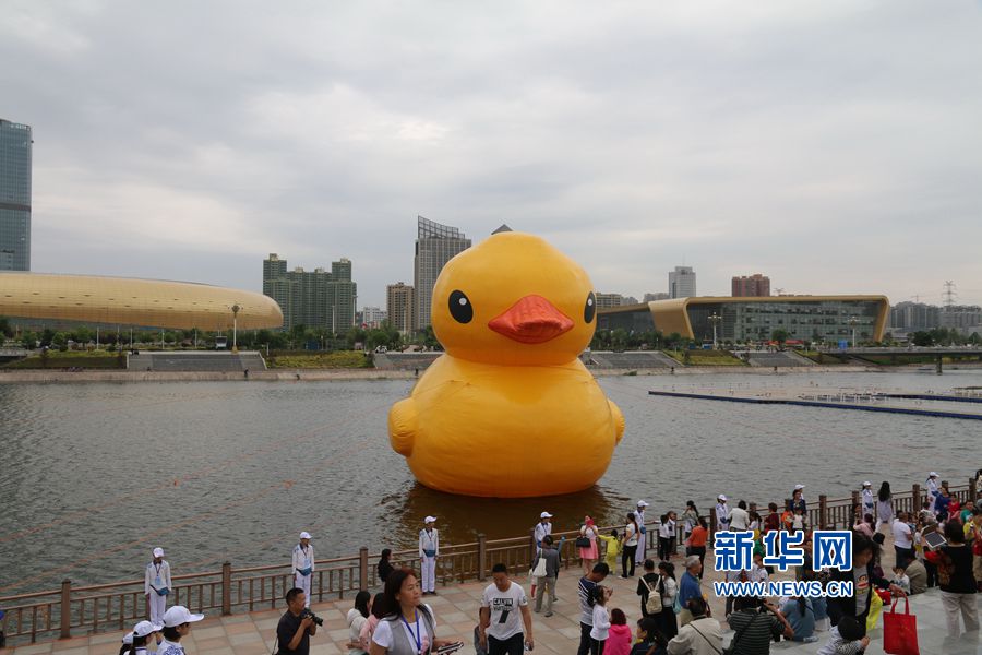 5月25日,風靡世界的大黃鴨驚艷亮相美麗天鵝城三門峽,為第二十二屆黃河文化旅游節暨投資貿易洽談會助興增彩。大黃鴨由荷蘭藝術家霍夫曼設計創作并風靡全世界,是現代化城市文明的標志。從2007年開始,大黃鴨就開始游歷世界,每次大黃鴨都會引來當地粉絲的瘋狂追捧,給人們帶來驚喜、歡笑和對童年的美好回憶。新華網發(鞏衛東 攝)