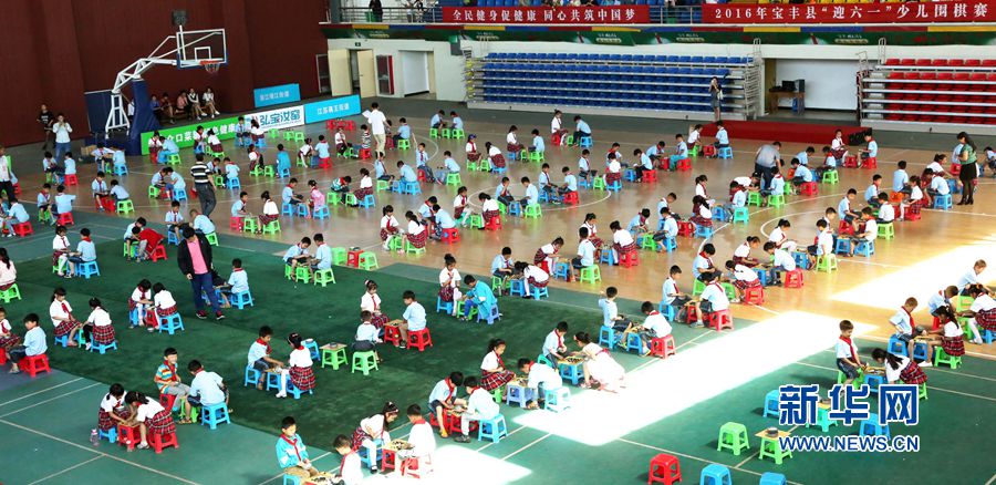 5月29日,河南省寶豐縣站前路小學的圍棋小選手們參加慶“六一”少兒圍棋比賽,比拼智力亮棋藝,歡慶“六一”國際兒童節的到來 。當日,河南省平頂山市寶豐縣體育局、圍棋協會在體育館舉辦2016年迎“六一”少兒圍棋比賽,來自平頂山市縣區的200余名少兒圍棋高手擺下圍棋陣、紅白棋子對陣博弈“廝殺”,比拼智力。健身快樂迎“六一”。 新華網發(王雙正 攝)