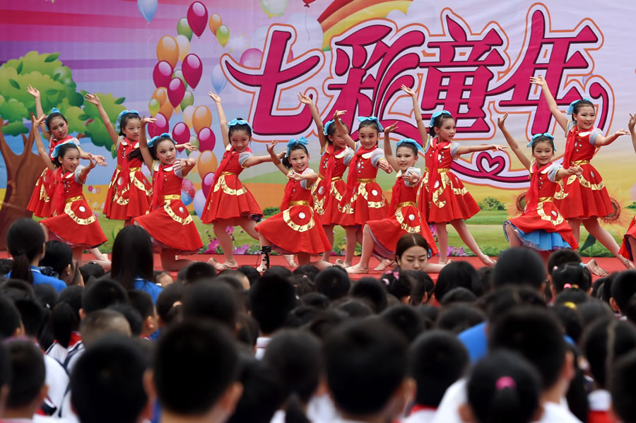 5月31日,鄭州市緯五路第一小學(xué)的同學(xué)們?cè)谶M(jìn)行舞蹈表演。 當(dāng)日,河南省鄭州市緯五路第一小學(xué)舉行“七彩童年、鮮活綻放”文藝展演活動(dòng),孩子們進(jìn)行舞蹈、啦啦操、太極扇等文藝表演,展示才藝,迎接“六一”兒童節(jié)。 新華社記者 李博 攝