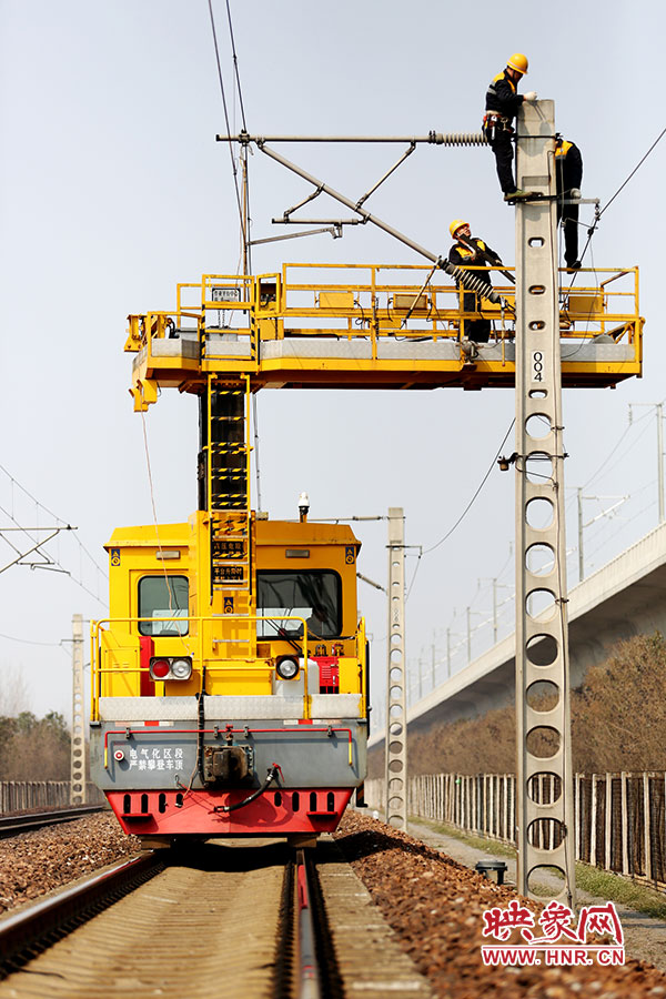 央廣網河南分網消息 (記者 阮海峰 文/圖 實習生 劉亞楠)3月17日,映象網記者從鄭州鐵路局獲悉,鄭州鐵路局鄭州供電段為隴海鐵路“把脈問診”,確保供電設備“健康”。 記者了解到,近日,鄭州鐵路局鄭州供電段利用春季這個檢修供電設備的黃金時期,組織全段職工在管內隴海鐵路線上進行集中維修施工作業,為隴海鐵路“把脈問診”,確保供電設備“健康”。 據有關負責人介紹,此次鄭州供電段計劃利用33個施工“天窗”,完成接觸網全面檢查177.532條公里。計劃投入軌道作業車264臺次,梯車132臺次,重點對供電設備的主導電回路、絕緣部件、線岔、吊弦等重要部位進行全面檢查整治,為列車出行提供安全優質供電。 -