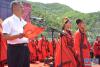 5月23日上午10時18分,在河南省西峽縣蒙華鐵路16標(biāo)三工區(qū)峽河特大橋旁,10對新人喜氣洋洋,正參加由中鐵上海工程局項目部舉行的“相約蒙華 筑夢中鐵”集體婚禮。 -
