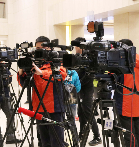 [圖片新聞]會場外的“兩會”記者們