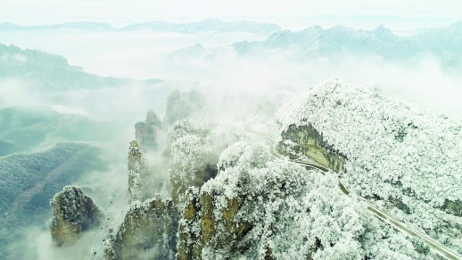 2月11日,受低溫寒潮天氣影響,張家界武陵源核心景區(qū)天子山同時(shí)出現(xiàn)霧凇、冰掛和云海雪景奇觀,讓游客體驗(yàn)到銀裝素裹、粉妝玉砌的壯麗風(fēng)光。