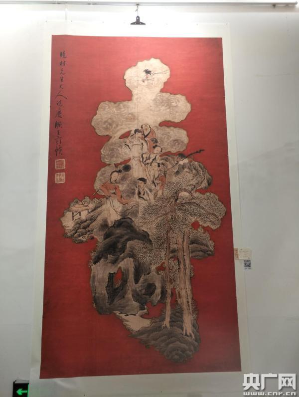 “湖南省圖書館十大館藏字畫真跡”之一,齊白石先生的壽字八仙圖軸人氣最高,在網友票選中排名第一。 記者 姜文婧攝