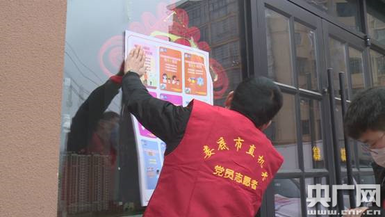 志愿者在社區張貼疫情防控宣傳海報(央廣網發 通訊員章娜 攝)