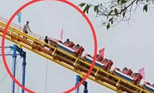 有位家長從廁所方向跑過來,然后邊跑邊說,他說我小孩的身體不適合乘坐這個過山車 麻煩你們停下來,把我小孩放下來。