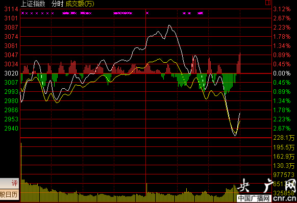 滬指午后跌破3000點(diǎn) 盤中跌幅近3%