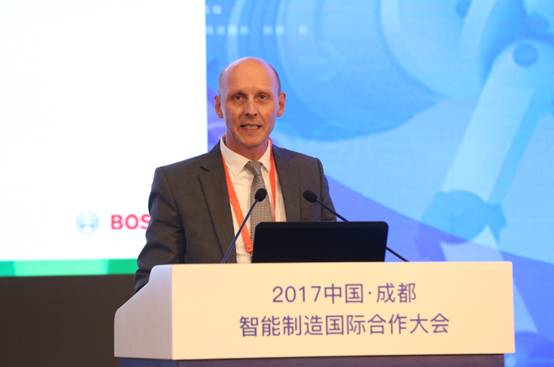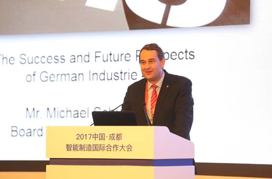 為了務實探討智能制造的國際合作,此次大會特別邀請中德智能制造聯盟作為共同主辦方,希望以中德合作的成功案例為范本,以中德兩國優秀智能制造企業的發展經驗,為國際間合作和成都制造業的加速發展提供有價值的借鑒。來自德國聯邦經濟發展與外貿協會董事邁克爾·舒曼在會議上發表主題演講。他提到,工業4.0并不是第四次的工業變革,或者一系列具體的技術變革,提到工業4.0時要強調的是政策的推動和戰略的推動所帶來的成功,工業4.0推動了制造行業的數字化,包括智能工廠、人機工程、互聯網物聯網的建設都是它所取得的成績。
