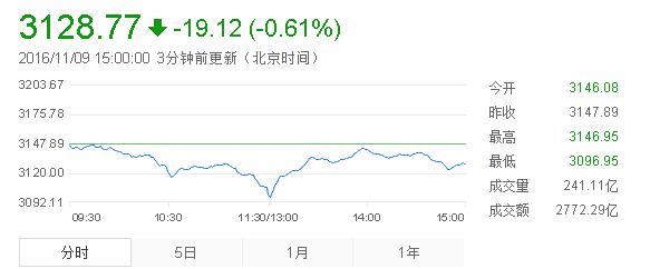 央廣網北京11月9日消息 據經濟之聲《交易實況》報道,今日A股上演終極大反轉,早盤受美國大選的波及,兩市盤中一度大跌,午后開盤一度跌破3100點關口,最大跌幅1.6%,但這不能對A股反彈形成任何阻礙,隨著煤炭、一帶一路等權重板塊崛起,滬指快速收復失地,后進入平穩震蕩,臨近尾盤,隨著美國大選的塵埃落定,市場再度小幅下挫,后企穩。