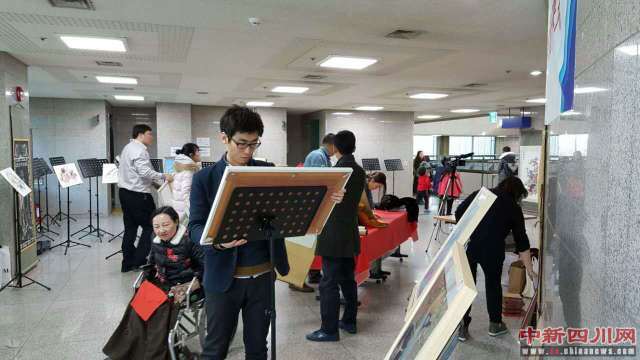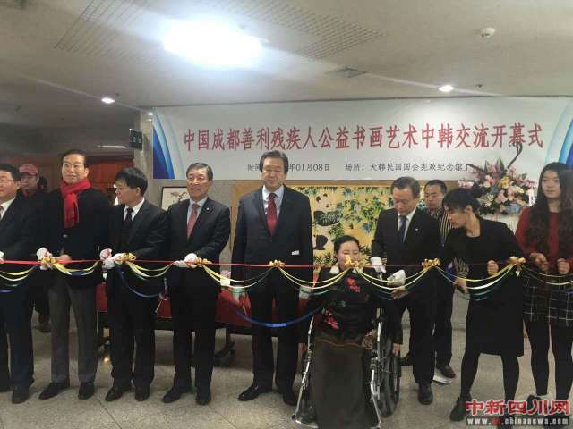央廣網江西分網1月9日消息 8日,成都善利殘疾人公益書畫藝術中韓交流會在韓國首爾隆重舉行。韓國執政黨新國家黨中央委員會代表黨魁、國會議員金武星, 韓國執政黨新國家黨中央委員會總長、國會議員黃震夏, 韓國執政黨新國家黨中央委員會國民同胞首席副委員長、國會議員楊昶榮,前大韓民國駐華大使館大使、國會議員權寧世, 韓國執政黨新國家黨中央委員會總干事樸京培, 世界韓人商工總聯合會對外協力委員長、中韓自由貿易(FTA)民間商貿促進發展委員會委員長金振興,以及成都善利殘疾人公益書畫藝術交流團代表逾百人出席參加了開幕式。