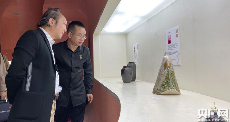 中國美協(xié)工藝美術委員會委員、江西省美協(xié)副主席支林在參觀展覽(央廣網發(fā) 通訊員提供)