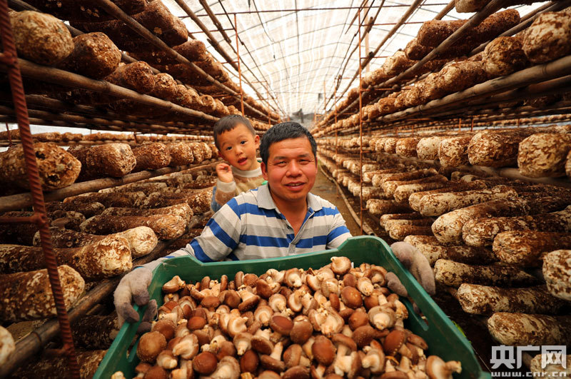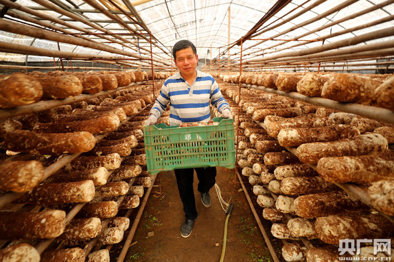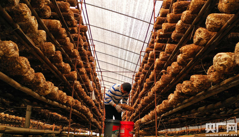 農民正在采摘扶貧香菇