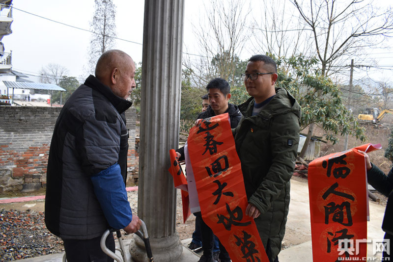 1月17日,高塘鄉(xiāng)大垅村貧困戶張緒火聽說鄉(xiāng)里在開展送春聯(lián)活動,很興奮。一直想要寫一幅春聯(lián)感黨恩的他,因為出行不方便,委托鄉(xiāng)干部幫忙代寫,于是給扶貧干部打了個電話。“查鄉(xiāng)長,我腿不方便,去不了鄉(xiāng)里,請幫忙留一幅春聯(lián)給我,好貼在建成的新房子上。”接到張緒火老人的電話,鄉(xiāng)干部滿口答應(yīng)了。