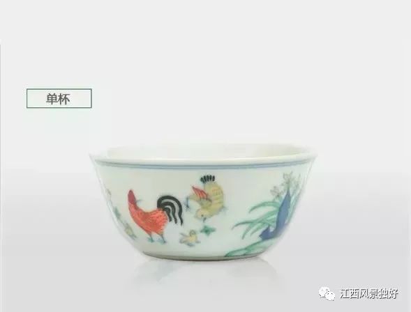 斗彩工藝創(chuàng)燒于明代成化年間,用青花勾廓、五彩填色,有青花與彩瓷競(jìng)艷之意。雞缸杯是明成化斗彩杯之一,即飾子母雞圖之盛酒小杯,環(huán)繪公雞偕母雞領(lǐng)幼雛覓食。雞缸杯色彩繽紛鮮明,撫之柔潤(rùn)如玉,繪畫(huà)率真可人。