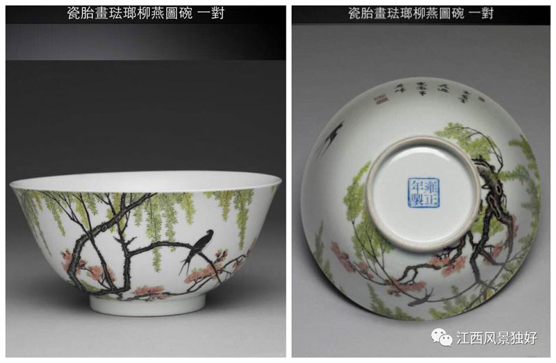 七、清雍正瓷胎畫(huà)琺瑯柳燕圖碗