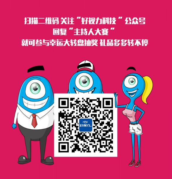 同時,投票成功后,可關注微信公眾號“好視力科技”回復“主持人大賽”,就可參與幸運大轉盤抽獎,禮品多多轉不停。