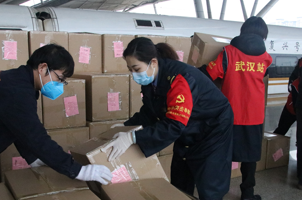 每天,到發旅客20余萬人的高鐵站轉變為“醫療物資中轉站”,高鐵客運員們也變身成為“搬運工”,中國鐵路武漢局集團有限公司武漢站“五心”服務組黨支部書記、33歲的值班站長賈青青便是其中一位。她從春節前一直住在車站未回家,丈夫王楊在中國鐵路武漢局集團有限公司調度指揮中心工作,因封閉管理一直未能見上面,4歲女兒也只能交給老人照顧。