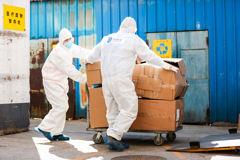 北京環衛集團固廢物流公司醫廢中心職工在清運醫療廢棄物(北京環衛集團供圖)