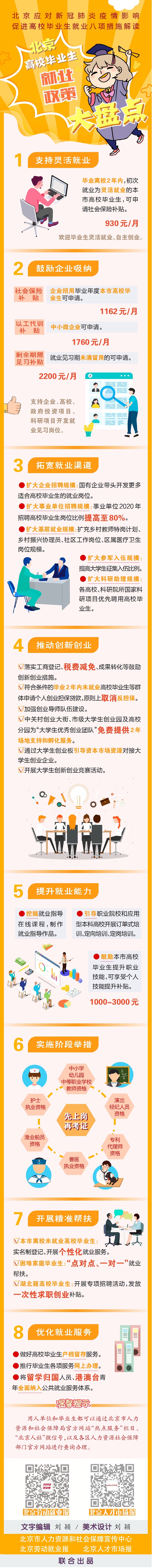 記者還從北京市人社局了解到,“京8條”針對今年新冠肺炎疫情的特殊情況,加大力度鼓勵企業吸納高校畢業生,并從擴大事業單位和基層就業規模、科研項目優先聘用等多個方面,促進高校畢業生就業。