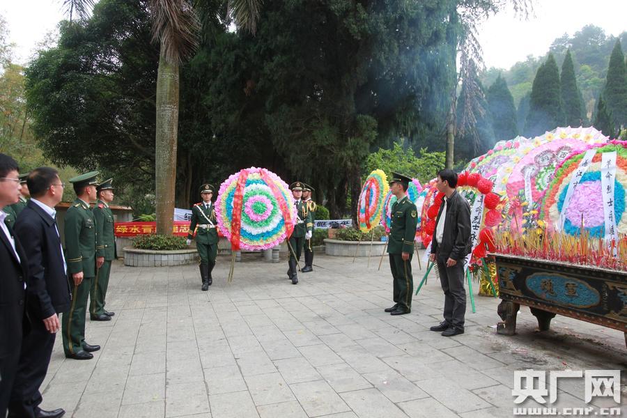 圖為警民敬獻(xiàn)花圈。 央廣網(wǎng)憑祥3月29日消息(記者張壘 許大為 通訊員 寧方輝 樓陽)清明節(jié)臨近,3月29日,廣西友誼關(guān)邊檢站監(jiān)護(hù)中隊(duì)黨員官兵、憑祥市綜合保稅區(qū)管委會代表40多人在駐地南山革命烈士陵園舉行祭奠活動。 10時(shí)許,邊防官兵向革命烈士敬獻(xiàn)花圈,參加祭奠的代表們列隊(duì),向?yàn)樾轮袊夥攀聵I(yè)拋頭顱、灑熱血的革命先烈們脫帽默哀。隨后,全體人員緩步繞行、依次瞻仰了革命烈士紀(jì)念碑。 整個(gè)活動莊嚴(yán)、肅穆,大家接受了一次精神洗禮和思想教育。戰(zhàn)士屈景峰說,這次活動進(jìn)一步增強(qiáng)了他立足崗位,履職盡責(zé),忠誠奉獻(xiàn)的責(zé)任感和使命感。 -