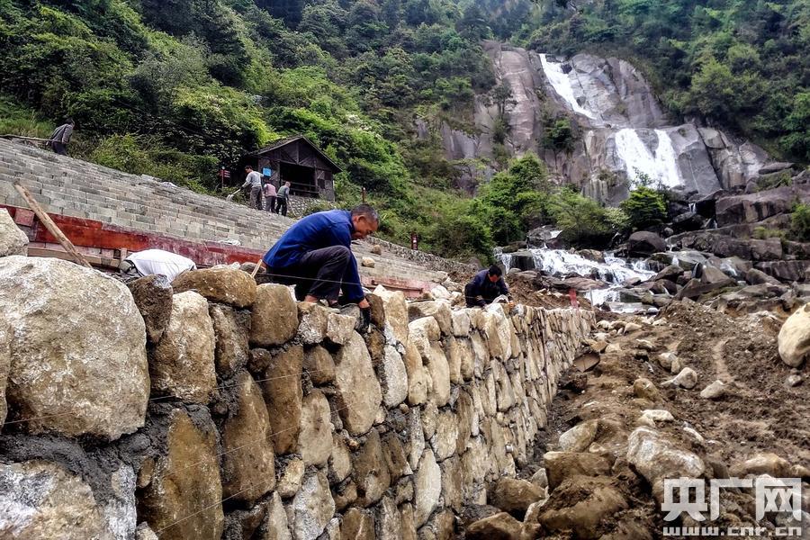 當地村民修建碼頭,以便發展寶鼎湖觀光業。 央廣網資源4月24日消息(記者 張壘)2014年,國家發改委、國家旅游局等7部委聯合下發《關于實施鄉村旅游富民工程推進旅游扶貧工作的通知》。其中,明確提出:到2020年,扶持約6000個貧困村開展鄉村旅游。 廣西資源縣資源鎮同禾村即是國家鄉村旅游扶貧重點村。當地坐擁寶鼎山,九級瀑布——寶鼎瀑布傾瀉而下,注入山腳的寶鼎湖。明代地理學家徐霞客亦曾到訪于此,稱贊瀑布:“懸崖飛濺,長如布,轉如傾,勻成簾”。 同禾村依靠旅游資源脫貧,首當其沖是要改善基礎設施,翻修道路、建設碼頭都是主要工程。但受限于地形條件,笨重的石材只能靠騾馬一點點運上山,方能順利施工。有時,牲口氣喘吁吁,累得直要“罷工”休息。 -