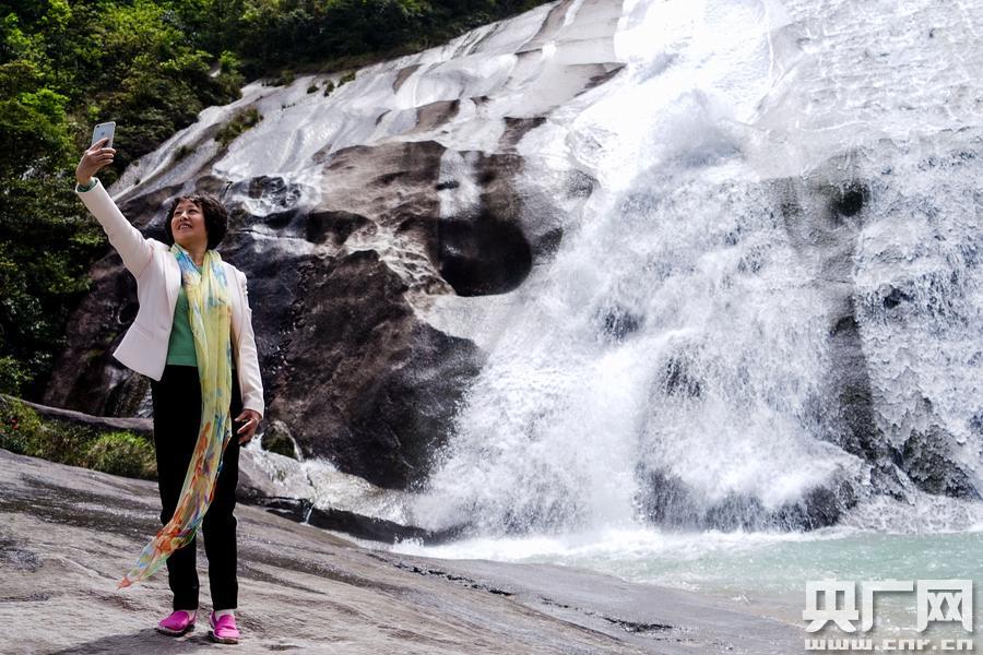 雖然交通不便,但寶鼎瀑布仍吸引著周邊游客前來觀賞。 -