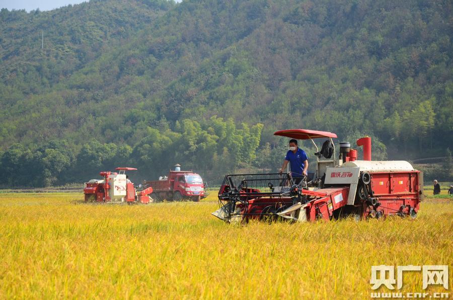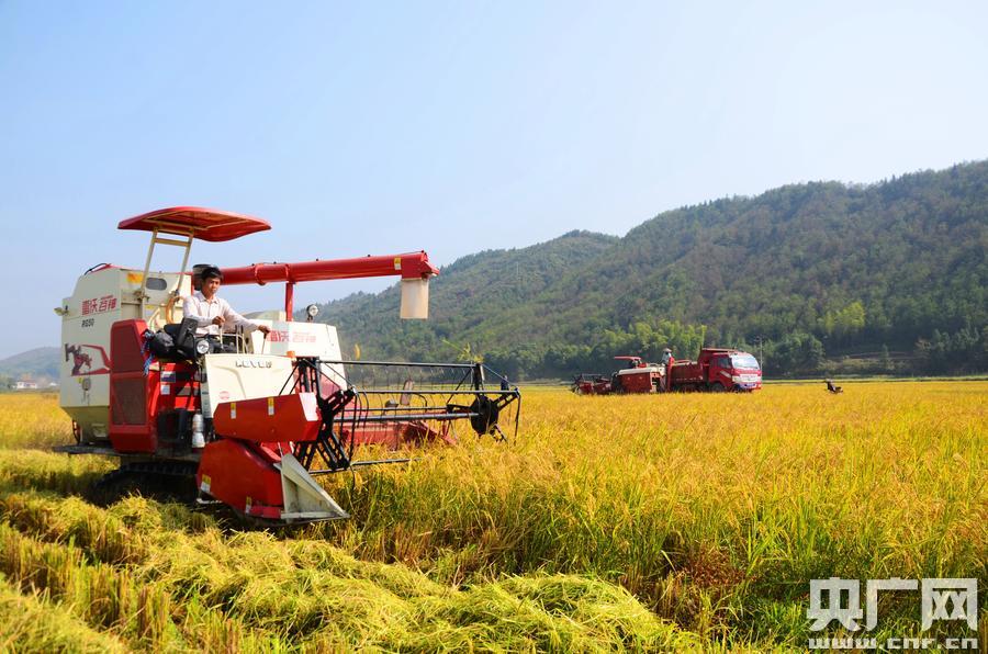 •      在湖南省懷化市溆浦縣水東鎮千畝再生稻高產示范片,收割機正忙著收割再生稻。(央廣網發 曾偉攝)   據了解,今年湖南省農技推廣總站在懷化溆浦創辦示范片,種植面積達1069畝,選擇“Y兩優9918”“甬優4149”等優勢品種,全程機械化生產,每畝可增收1000元。