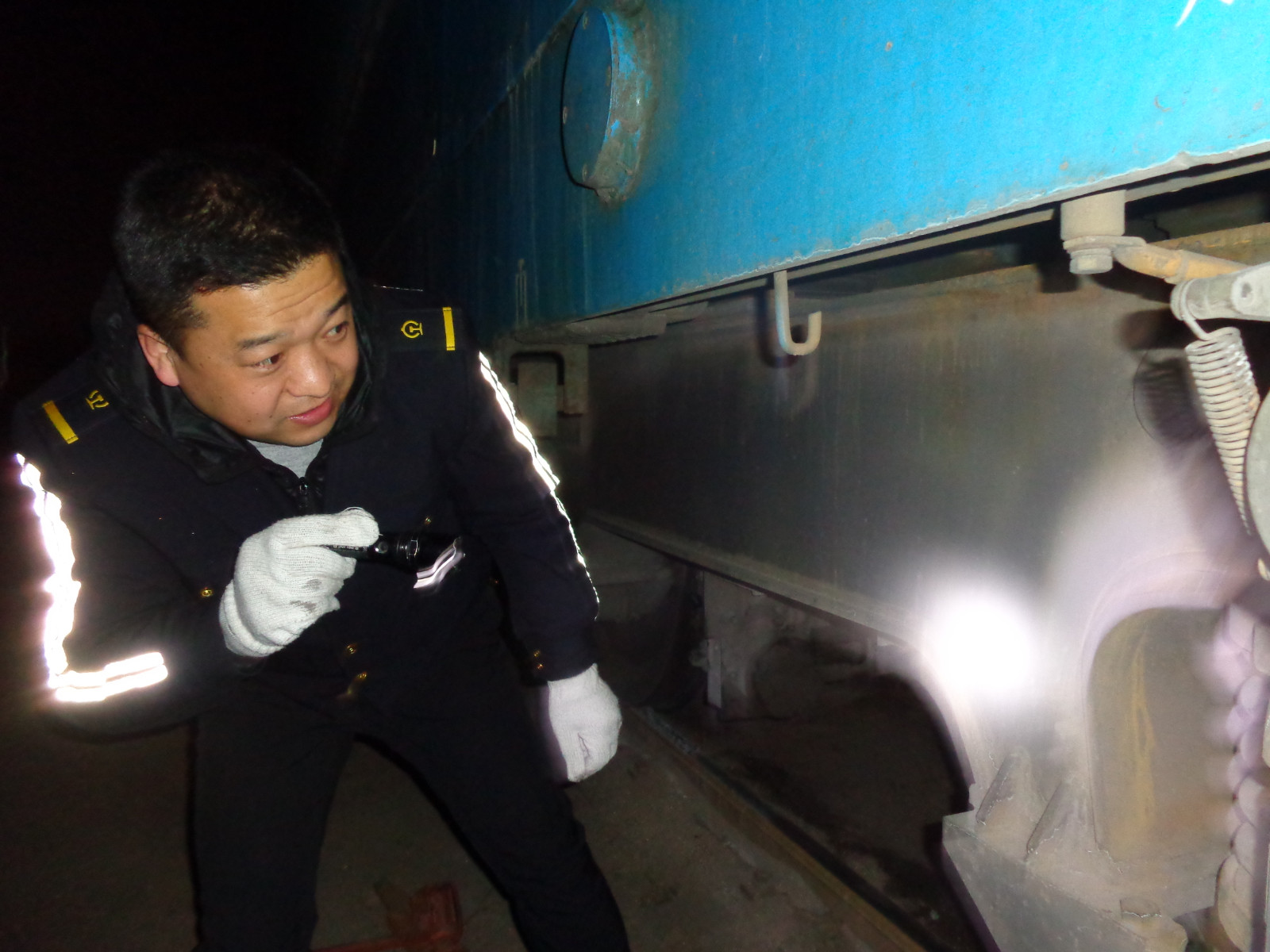 22時(shí)17分,侯俊下車(chē)拿著信號(hào)旗引導(dǎo)機(jī)車(chē),“哐當(dāng)”一聲,機(jī)車(chē)與X536貨物列車(chē)成功連接。共有8兩重車(chē),牽引重量317噸,載重112噸。