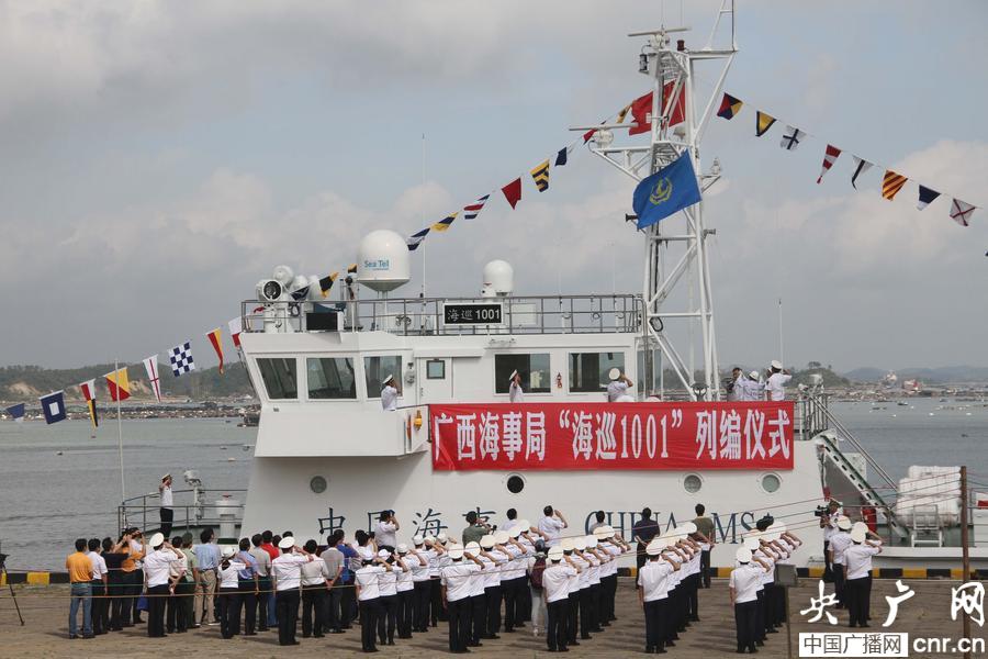 廣西海事局“海巡1001”在欽州列編(央廣網發 龍子陽 攝)