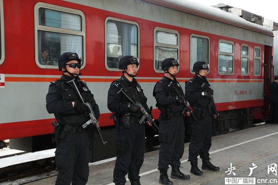 特警隊員在列車前站崗(央廣網記者 許新霞 攝)