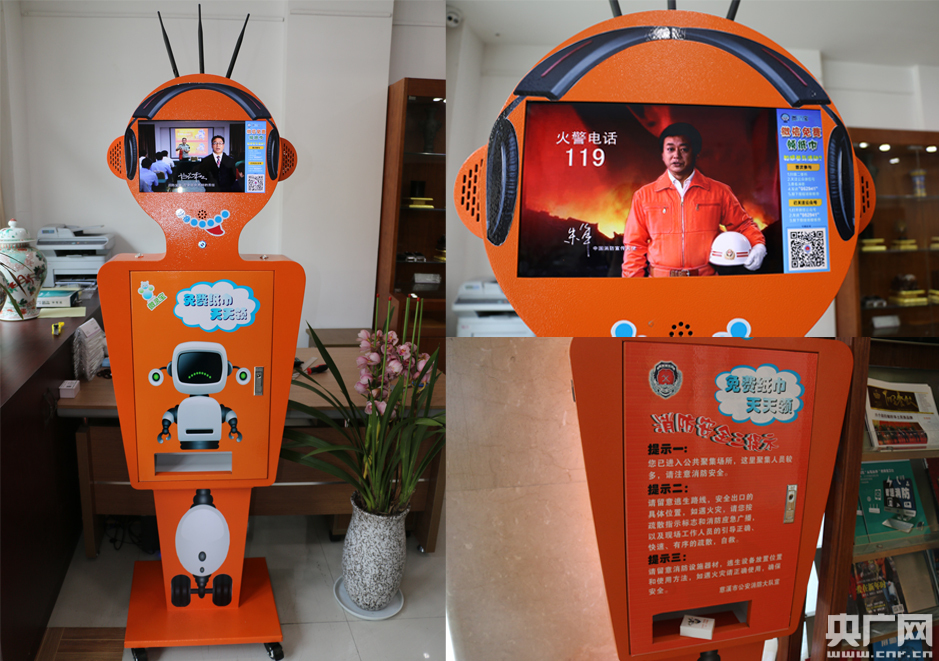 消防宣傳機器人,是一款集宣傳與服務于一體的新型設備,造價15800元。其通體橙色,身高一米八,這種設計不僅視覺上搶眼,而且其高度也十分貼合消防鐵軍的正能量形象。這款機器人是由寧波慈溪市消防大隊和余姚市神瑋文化傳播有限公司共同協商制作的,主要放置在車站、商場、賓館等城區人員密集場所,首批試點的10臺消防機器人已悉數上崗服務。