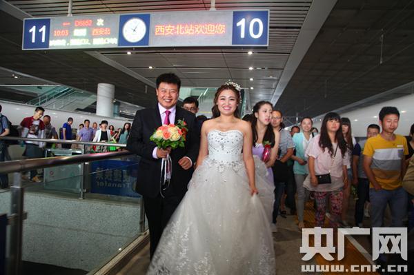 高鐵迎親首現西寶客專 新人手牽手坐高鐵結婚