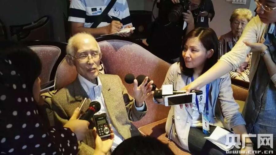 文學大師、著名詩人余光中在福建省泉州市參加亞洲藝術節時接受中央臺記者杜蘇閩的采訪。(央廣網發 通訊員姚德純 攝)(央廣網記者 葛朝興 攝)