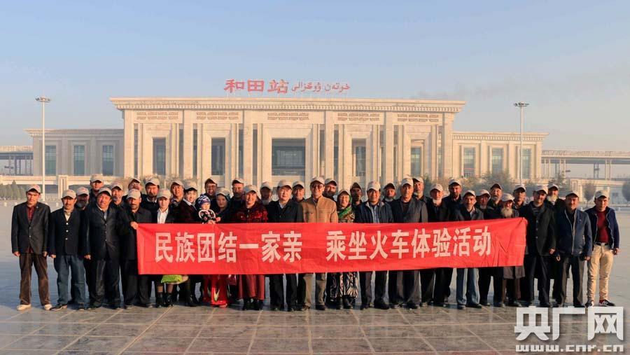 央廣網和田11月3日消息(記者張雷 通訊員李維)今天上午10點,被譽為“玉都第一窗口”的新疆和田火車站迎來了一群特殊的旅客:烏魯木齊鐵路局“訪惠聚”住村工作組組織拉依喀鄉達奎村42名村民代表乘坐5810次“民族團結大篷車”開展“民族團結一家親”乘坐火車體驗活動,感受被南疆地區各族群眾譽為“幸福路”的喀什至和田鐵路的今昔變化。
