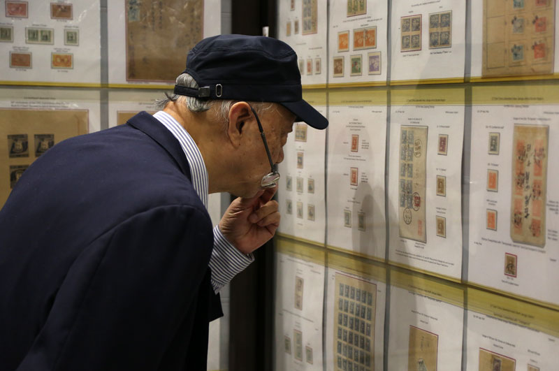 集郵愛好者觀賞集郵展品