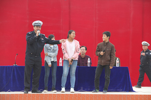 在講座過程中,桂平交警根據木根初中地處玉桂二級公路邊、路況復雜的現狀,深刻闡述提高交通安全防范意識的重要性,以近期本市某鎮初中三名學生的交通違法行為導致交通事故而身亡的慘痛案例為警示教訓,告誡廣大青少年學生要嚴守交通法規,增強交通安全意識,努力做到文明出行和安全出行。桂平交警具體講解了目前轄區的道路交通安全形勢,深入分析了發生交通事故的原因及危害,向廣大師生講解如何做到安全步行,提醒出行騎自行車以及乘車的注意事項。在講座過程中,桂平交警還對道路交通安全常識進行普及,以有獎問答的形式調動學生參與交通安全知識學習的積極性。(注:圖片由廣西桂平市公安局交警大隊提供)