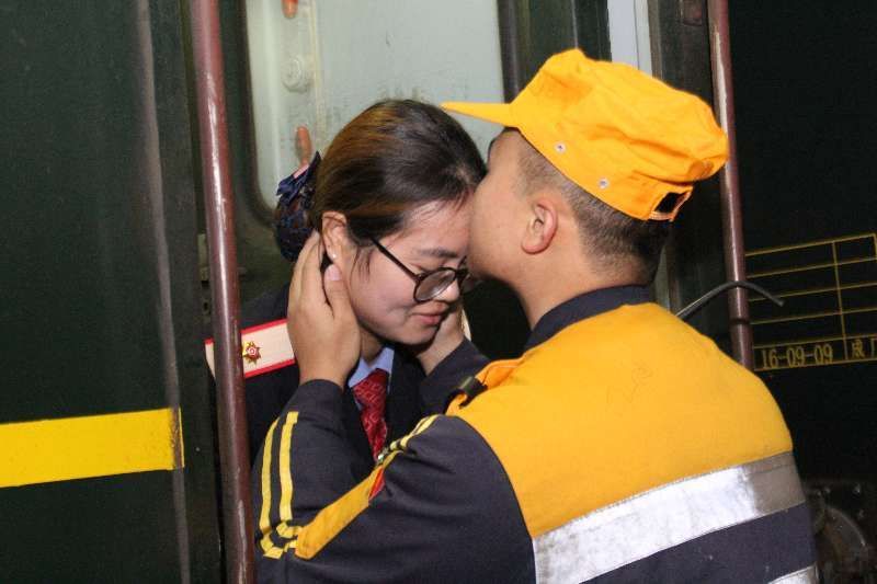 夫妻倆的為愛(ài)奔走,也引起了雙方領(lǐng)導(dǎo)的關(guān)注。2016年10月,曾誠(chéng)被調(diào)到K935/6次乘務(wù)班組任列車長(zhǎng),列車從襄陽(yáng)站始發(fā)經(jīng)焦柳線到達(dá)廣州東站,途中會(huì)停經(jīng)丈夫白江旭所在的枝江車站。因?yàn)槭锹毠ねㄇ谵k理站的緣故,列車在枝江站會(huì)有3分鐘的停點(diǎn),而這3分鐘也使夫妻倆8天里的短暫相聚變得更加彌足珍貴。為此,枝江車站也為白江旭調(diào)換了班組,讓他有時(shí)間接車。每每到了曾誠(chéng)出乘時(shí)間,白江旭都會(huì)穿戴的整整齊齊,在車站站臺(tái)耐心等待著妻子值乘列車的到來(lái)。列車進(jìn)站,車門打開(kāi),妻子第一個(gè)走下了列車,立崗觀察無(wú)異樣后,便一個(gè)健步扎進(jìn)了丈夫白江旭的懷里,與丈夫寒暄幾句,待到乘降結(jié)束,妻子依依不舍的登上了列車,兩人在汽笛聲中匆匆告別。“三分鐘”成了小兩口最甜蜜的最浪漫的約會(huì)。