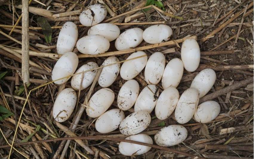央廣網(wǎng)上海7月21日消息(記者周洪 通訊員孫卉)記者今天(21)日從上海市綠化市容局獲悉,近日,研究人員在東灘濕地公園雀鳴渡中心島發(fā)現(xiàn)揚子鱷巢一個。經(jīng)調(diào)查,此巢巢高36cm,巢寬103cm,內(nèi)有長橢圓形的蛋25枚,平均長約25mm,寬約14mm,重約51g,所有的卵都具有受精帶,估計這些卵成功孵化的概率很高。 揚子鱷是中國特有物種,由于野外的物種資源數(shù)量極少,被IUCN的鱷類專家組確認為世界上最瀕危的鱷類,并被列為全球23種俄語保護計劃之首。雖然野生揚子鱷瀕臨滅絕,但我國揚子鱷人工繁殖非常成功,要使野生揚子鱷不致滅絕,只有通過建立或恢復(fù)足夠的棲息地,將飼養(yǎng)鱷放歸到有效的棲息地中即可重新建立或擴大野生種群。