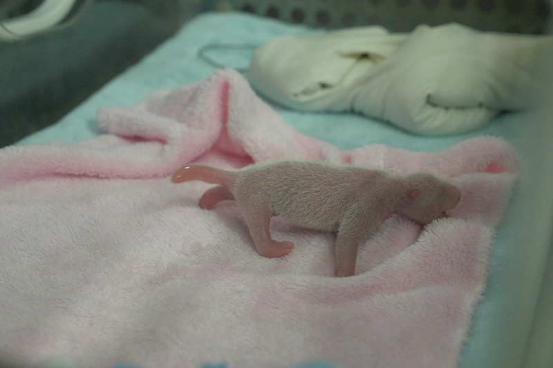 央廣網成都7月26日消息(記者劉濤)記者從成都大熊貓繁育研究基地獲悉,該基地雌性大熊貓“小丫頭”于2017年7月26日凌晨2點10分產下一只雌性健康熊貓寶寶,初生體重115g,幼仔聲音洪亮,身體健康。截止目前,成都大熊貓繁育研究基地2017年共繁育7胎10仔。
