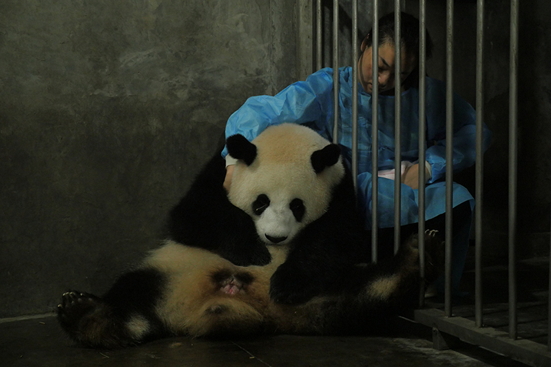 據成都大熊貓繁育研究基地專家吳孔菊介紹,大熊貓“小丫頭”于2017年6月28日,開始出現減食反應,窩窩頭完全不吃,只吃蘋果;7月25日凌晨開始,“小丫頭”頻繁走動,舔外陰,且有“做窩”行為;7月26日00:45破水。