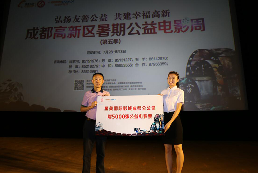 央廣網(wǎng)成都7月28日消息(記者劉濤)今天(28日),記者從成都高新區(qū)獲悉,由成都高新區(qū)黨群工作局、高新區(qū)志愿者協(xié)會主辦的“暑期公益電影周”(第五季)首映在在環(huán)球中心星美國際影院首映廳舉行。據(jù)了解,這已是成都高新區(qū)連續(xù)五年舉辦暑期公益電影周活動,近萬人參與了此次活動。