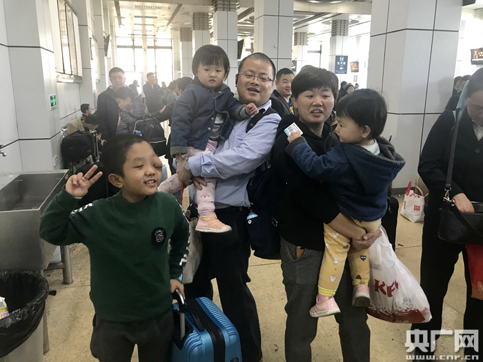 一家五口乘坐幸福專列回到家鄉(xiāng)了(央廣網(wǎng)記者 攝)