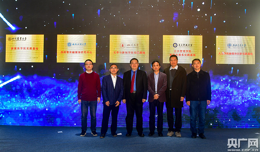 四川高校相關學院負責人給成都高新區融媒體中心授牌并合影(央廣網發 梁磊 攝)