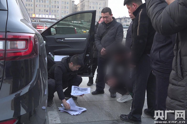 民警從嫌疑人車輛中查獲盜用的身份證復印件(央廣網發 襄陽鐵路公安供圖)