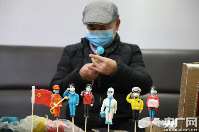 非遺傳承人創作“抗疫面人”(央廣網發 通訊員陳毅 攝)
